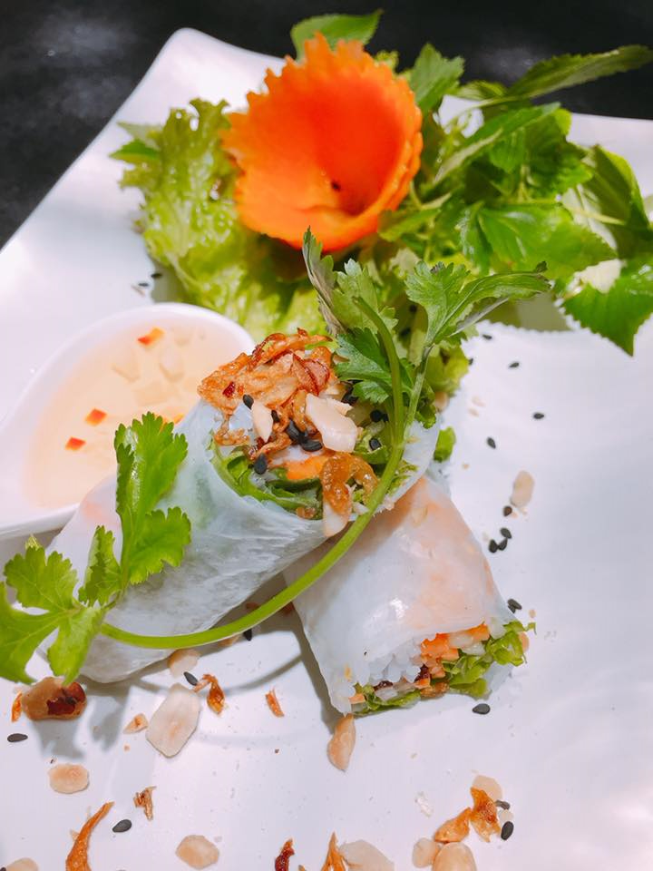 It literally means "salad rolls" and should be distinguished from the fried rolls. The translucent cigar-shaped rolls are packed with greens, sometimes shrimp and/or pork, and herbs. They need a dunk in nước chấm of course. Almost every region in Vietnam has its own distinct spring roll but no matter where you are, the wrapping and rolling process is more or less the same.